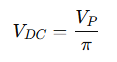 - Average Voltage (V_DC): The average DC output voltage can be calculated as: